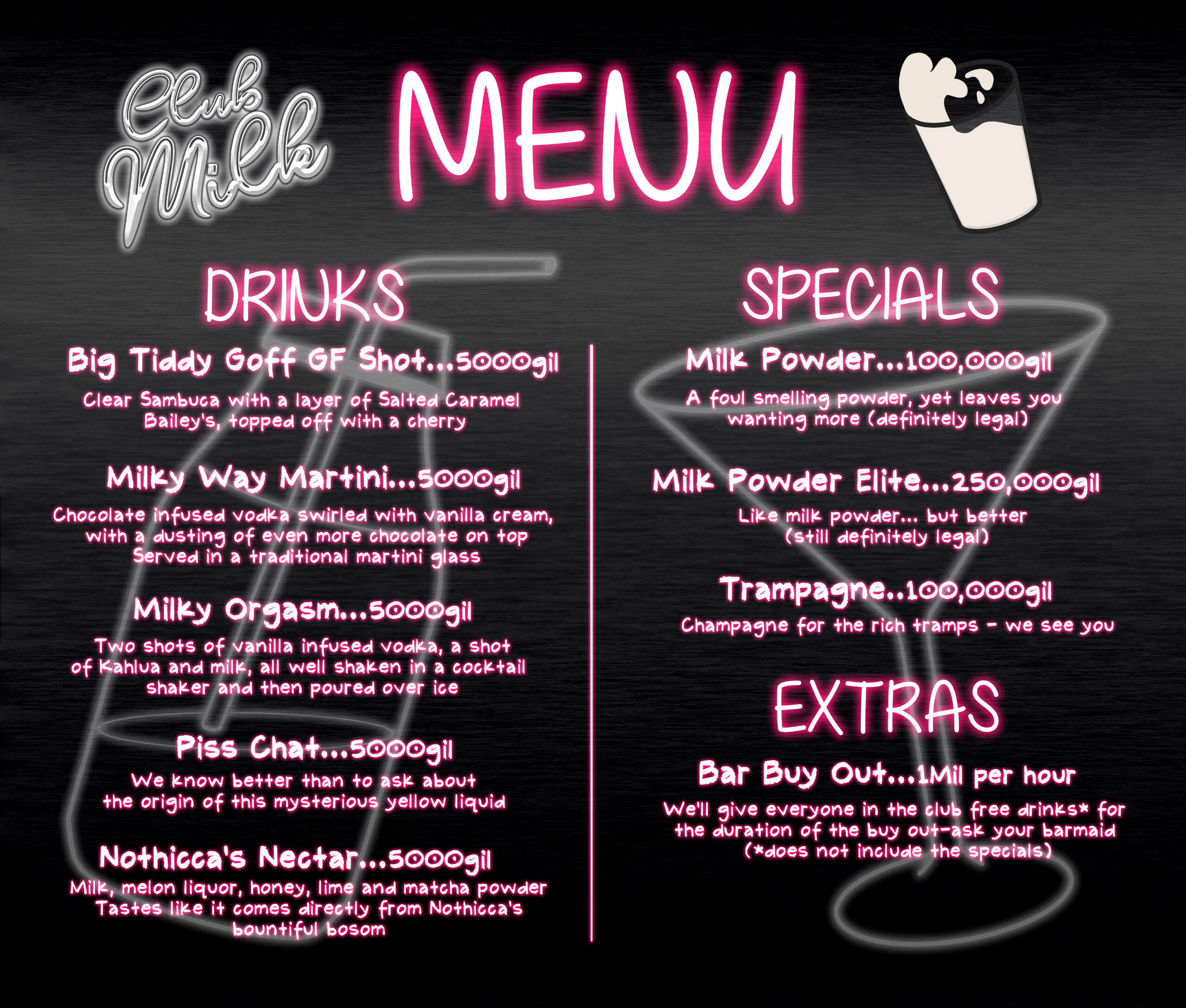 Club Milk is an LGBT friendly spot situated on Chaos Omega, Empyreum.